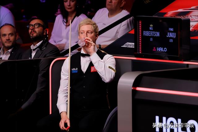 现在罗伯逊和咱们另一个小将庞俊旭的比赛已经打完,罗伯逊只是稍微领先一点积分。