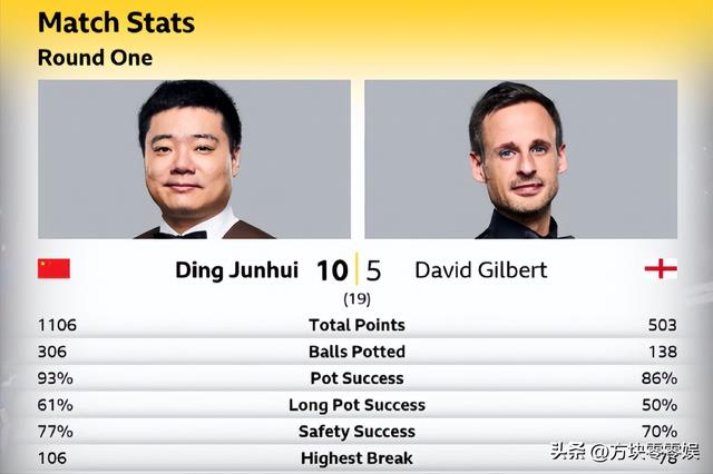 丁俊晖在另一张台子上稳稳当当地赢了大卫·吉尔伯特。