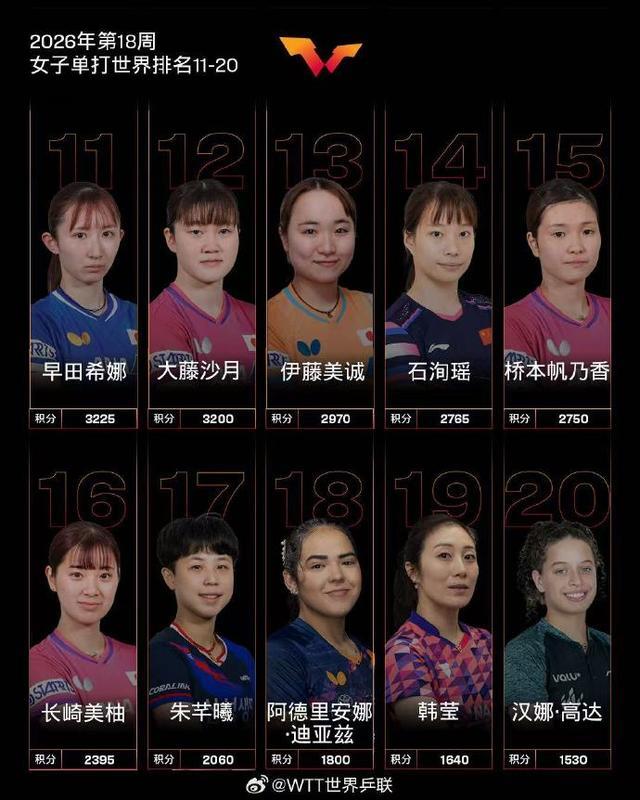 世界排名更新,国乒迎来三大巨变,外协冲击,王楚钦和孙颖莎霸榜 4月27日,国际乒联公布了2026年第18周的世界排名,虽然这一次排名变化与之前的排名对比,可以发现国乒目前迎来了3个变化,已经是成为了大势所趋!其中第一个变化就是国乒年轻小将的崛起,已经成为了不可阻挡的大趋势 ... 世界排行04-29