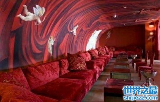 瑞士的这个酒吧是专门为外国人和一些其他的艺术家所设计的,里面的一些桌子和椅子等其他设计都非常的与众不同,比如说他们会选择一些棕色或者是骨骼作为主要的装置,看起来会有一点恐怖,但是却会给人不一样的享受。