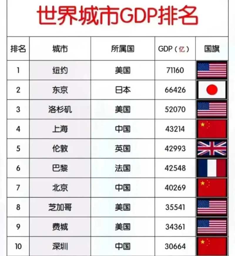 世界城市GDP排名揭晓,东京不敌纽约,巴黎不及伦敦,北京上海呢