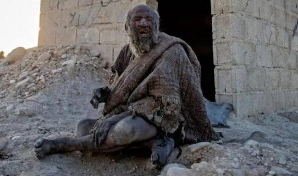 这个男子在94岁的时候被发现他是一一老人名字叫做哈吉,他在伊朗南部法尔斯省德杰加村生活,之前一直都没有被人注意过,直到后来才被人发现。当时发现他的浑身特别的脏,甚至手上面积攒了很多的灰全身都覆盖了大量的灰尘。在询问过之后就发现他已经坚持了60多年都不去洗澡,这么肮脏的活了这么多年,周围生存的环境特别的差,平常就是在一个煤渣砖棚屋里面。