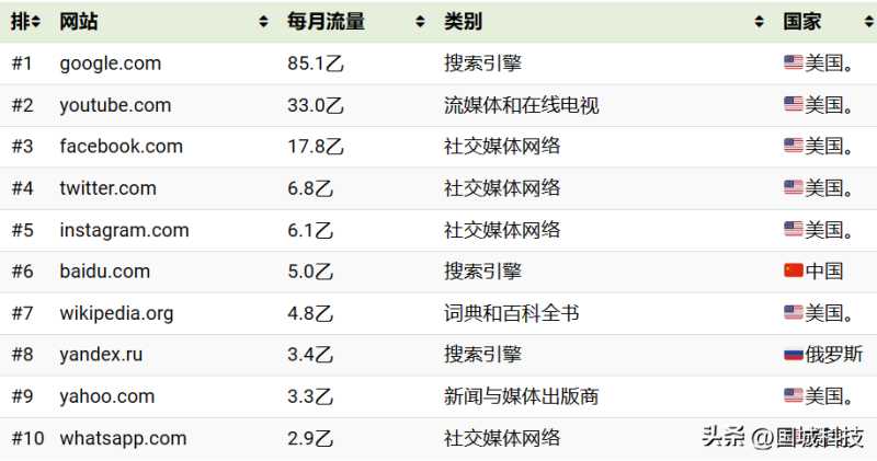 美国仍然是许多世界上最大的网站聚集地,在该排名中占据了30位。在这30个网站中,有一半是由微软、亚马逊、Alphabet、Meta和Netflix等大型科技公司运营的。