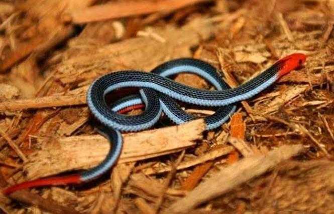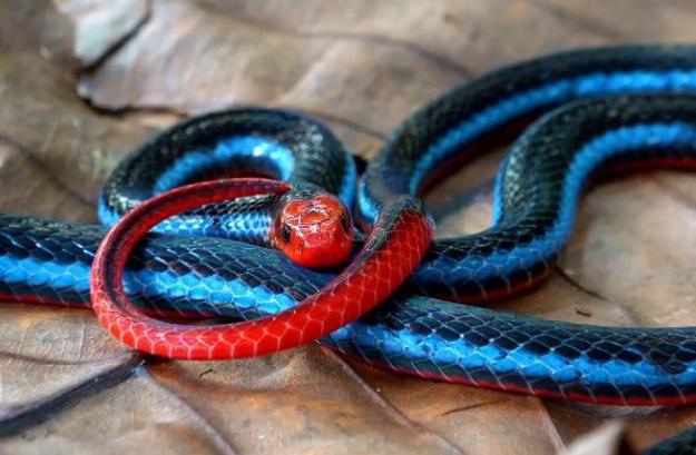 这种蛇和普通的蛇类是完全不同的,外观长相就十分的漂亮,尤其是头部腹部尾部的颜色和身体上面的蓝色呈现出极强的对比是鲜红色身上的,蓝色更是显得十分的神秘,在腹部两侧是浅蓝色的鳞片,看起来像是腰带一般,虽然长得特别的美丽,但是却拥有着剧毒,也被列为是剧毒的蛇类排行榜之中,只要遇到之后不主动挑衅,一般不会主动攻击人。