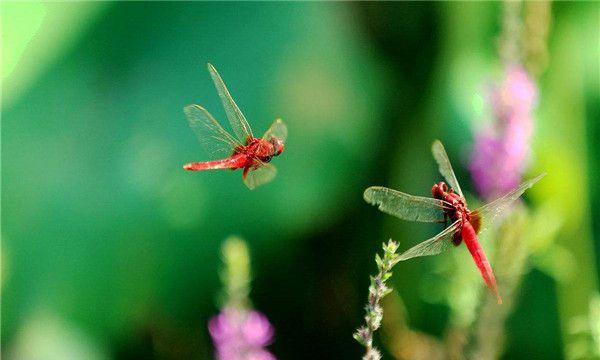 因为这种蜻蜓的身体颜色特别的鲜艳,因此也很容易被发现,所以在和周围绿油油的颜色做对比的时候,更加的明显,活动范围也特别的小,就只会在水的附近活动,并选择较近的地方产卵。