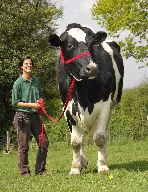 这头世界上最高的奶牛则是来自于美国伊利诺斯州奥兰治维,在当地水土方面特别的优越,布洛瑟姆在成年过之后,身高达到了两米,和正常的人身高进行对比则10分的庞大,2016年的时候被列入到世界吉尼斯记录大全之中。在平常不论是饮水量,所食用的食物都是普通奶牛的4倍,还要多排泄量,也达到了68公斤。