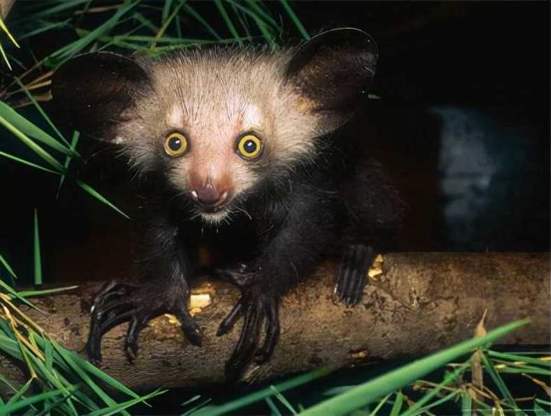 狐猴的原产地是在马达加斯加,是一种灵长类的动物,有着啮齿动物的牙齿,而且还有着较为特殊的细中指,是世界上最大的一种夜行动物和灵长类的动物。长相特别的怪异,有着像蒲扇一般的招风耳,两个眼睛又大又圆,脸部呈现出三角形的状态,手指纤细看起来非常的诡异,是在1957年时被再次发现之前被认为灭绝,曾经是被当地人当做是厄运象征杀死,目前是属于濒临灭绝物种。