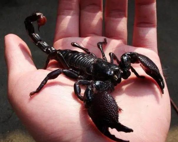 帝王蝎也被称之为是世界上最大的蝎子。这种蝎子的主要原产地是在非洲西部和中部的一些西数草原,还有热带丛林之中是世界上体型最大的蝎子之一,帝王蝎在成年过之后体长基本上都能够达到0.2~0.3米左右。在目前为止记录之中,世界上最大的蝎子是在0.4米左右,比一个成年人的手掌还要大出去两倍。