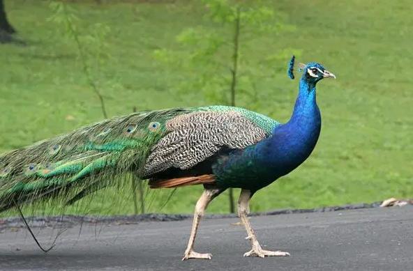 孔雀开屏的时候和不开屏的时候个头大小是完全不同,它的身体全部可以长到两米左右,不过它的尾巴部位是特别长的,尾巴部位占到了3/4,也就是1.5米,孔雀的头部是比较小的,颜色是翠绿色的,身上的羽毛颜色相当艳丽,其次颜色也是特别丰富的。有一些孔雀的羽毛是蓝绿色的,也有一些孔雀的羽毛是纯绿色的,或者是蓝色的等等,甚至还有一些孔雀它们的毛发有一些白色的,当然还有黑褐色的以及蓝色的,蓝色特别少。