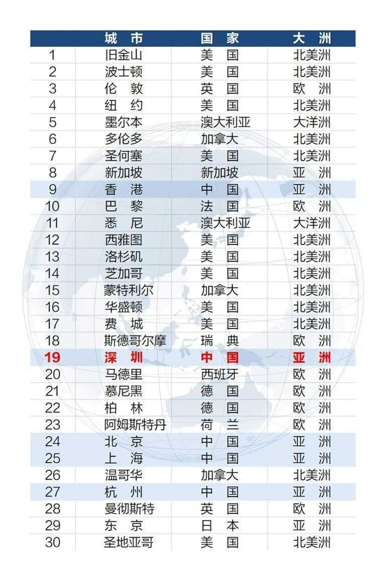 全球城市指数排行榜公布,中国内地城市深圳排行第一
