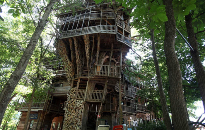 世界上最大的树屋从字面的意思当中就可以看到这是妥妥的建筑物,是房子,由于树屋的地理位置比较特殊,再加上面积比较大,成为世界上最大的树屋,这个树屋里面的设施相当丰富,树木遍布在七棵大树之间,树屋里面有楼梯,有各种各样的艺术品,都是纯手工雕刻而成的,树屋的顶部还有一个钟楼,堪称旅游胜地,有很多年轻人会选择在树屋当中举行婚礼。