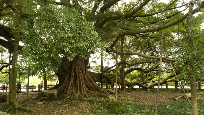 以上所说到的那个小故事是关于一支军队的故事,一支军队的人数相当可观有6000人,这6000人都可以躲在一棵树下躲雨,可见这棵树冠的个头,相关人员曾经给这棵榕树进行了测量,相当于半个足球场大,因此这棵树就远近闻名。虽然不知道传说当中的小故事是否真实,但是这个榕树的树冠的确特别大。