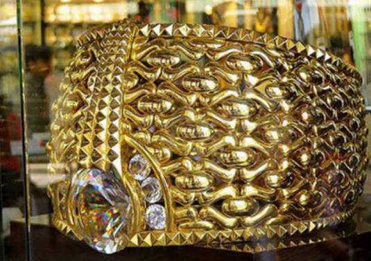梦金园规划组织制作了一个金戒指,用庞大两个字可以形容,这个戒指重量高达82.2千克,戒指的直径大约有80厘米,戒指的四周镶嵌了76颗精蓝宝石,可见做工相当精细,在制作的过程当中花费了众多时间以及心血,是由39位工作经验相当丰富的工匠历经99天才辛辛苦苦打造出来的一款金戒指。