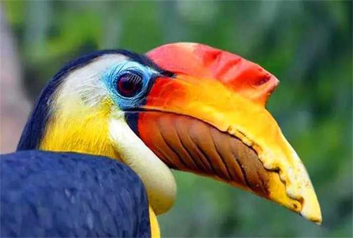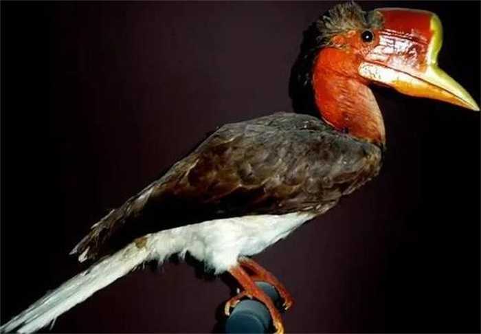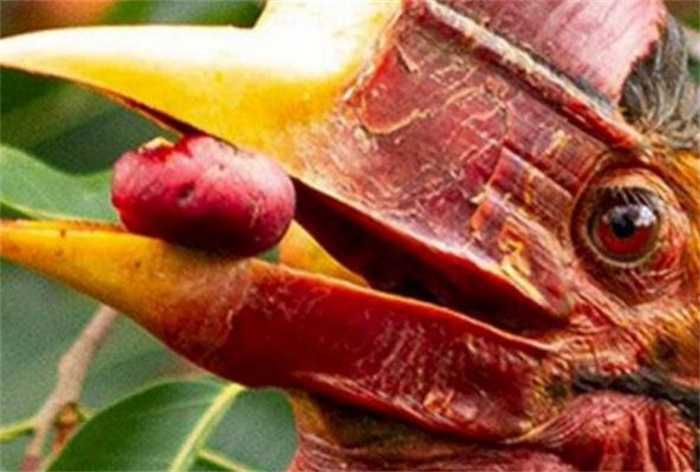 盔犀鸟个头特别大,头部的个头也比较大,头部很吸引人,头部的骨头当中是实心的,重量占到了总身体当中的10%,看到盔犀鸟的时候就像是头部戴上了一个圆形的大头盔一样,外边是红色的,内部是黄色的,特别显眼。盔犀鸟的头部特别漂亮,不过也给它们带来灭顶之灾,头骨相当密,堪比象牙,因此有很多人把盔犀鸟的头部当成雕刻品的原材料,据说奎西鸟的头部是一种特别厉害的毒药,古代所说的鹤顶红就是用它们的头骨制作出来的。