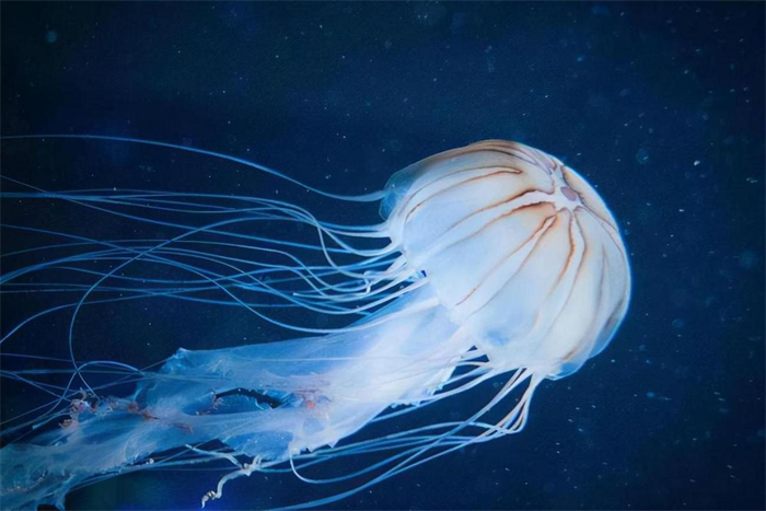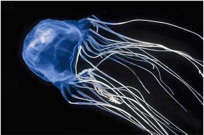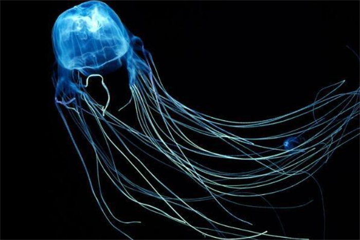箱水母又称之为海黄蜂,主要遍布在澳大利亚东北沿海水域当中,平时以蟹类以及鱼类为自己的主食,箱水母和其他水母完全不同,普通水母只是漂浮在水面上,等到猎物近身之后可以捕捉,箱水母会主动游动去寻找喜欢的猎物,游泳速度特别快,可以达到每个小时10公里左右,用触须锁定猎物之后猎物很难逃脱。