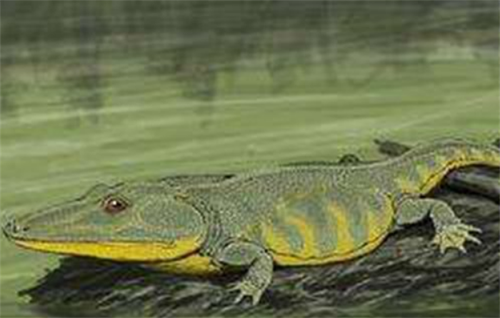 虾蟆螈是世界上最大的青蛙。身体长度大概5米左右,头部属于三角形,头部个头特别大,长度大概1.25米左右,全身的长度加起来大概4~5米左右,可见个头相当大,整体外观和如今的青蛙完全不同,和鳄鱼有一些相似。眼睛部位长得特别大,并且眼睛长在颅骨中间,颌骨上边有牙齿,看上去较为恐怖,具有相当强的攻击性,从这样的个头当中就可以看到大部分的生物都不是它们的对手,虾蟆螈的个头比较大,头部比较大,尾巴却特别短,因此长得比较搞笑。