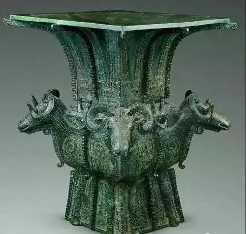 四羊方尊的独特之处在于其以羊为造型的设计理念和精湛的铸造工艺水平。四只羊头分别装饰在方尊的四个角上,栩栩如生,给人以强烈的视觉冲击力。同时,整个器物线条流畅、比例协调、工艺精湛,展现了中国古代青铜器铸造的高度成就。四羊方尊不仅是艺术品中的珍品,更是研究中国古代青铜器铸造技术和文化艺术的宝贵资料。
