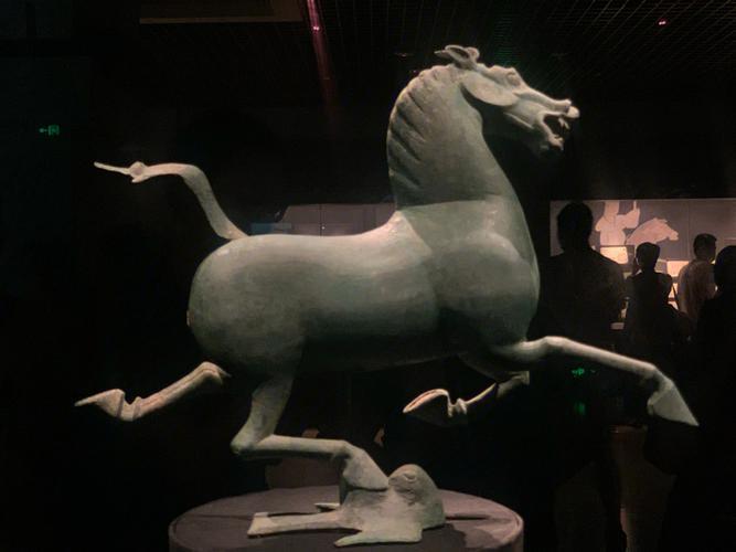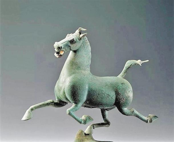 整个青铜器以一匹疾足奔驰的奔马为主题,马蹄巧妙地踏在一只飞翔的燕子身上,展现出一种独特的动感和力量。这种构思奇特的造型,不仅展现了东汉时期卓越的工艺技术水平,更展现了中国古代艺术家们的创新精神和文化自信。