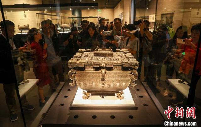 2023年10月,曾侯乙文物铜鉴缶引游客参观,其被誉为“世界上最早的冰箱”。(资料图)中新社记者 张畅 摄