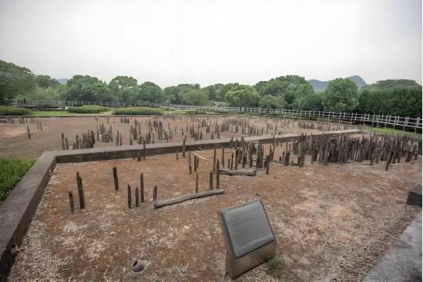 河姆渡遗址的惊喜可不止这一件牙雕。这里还出土了大量的文物,全方位展现了当时人们的生活。比如,猪纹陶钵也是浙江省博物馆的明星文物。这件陶钵由夹炭黑陶制成,外壁两侧刻绘着长鼻圆眼、鬃毛直立的野猪,猪身还刻有芽叶、稻穗纹饰以及象征太阳的重圈圆形纹,生动地反映了当时的农业和人们的生活场景。还有那大量的人工栽培水稻遗迹,让我们知道河姆渡人已经掌握了先进的稻作技术,妥妥的“干饭人”祖先。此外,河姆渡遗址还出土了骨耜、木桨等生产工具,干栏式建筑遗迹更是展示了当时高超的建筑水平。