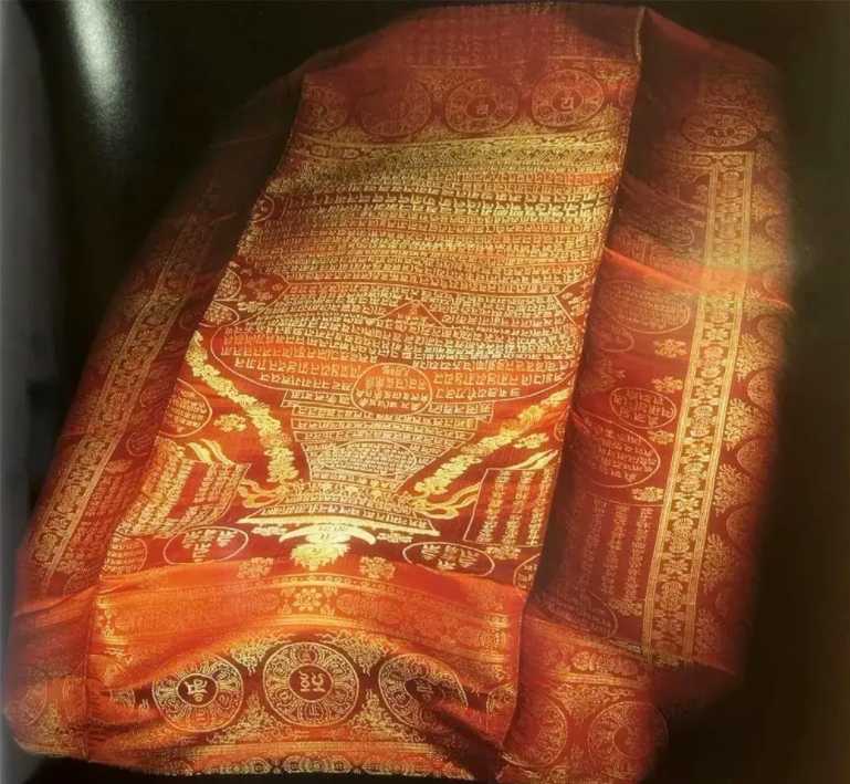 严格来说,陀罗尼经并不是东土佛教的经咒,而是密宗佛教的经咒。这部经咒属满清皇室“专属”,若非皇帝批准,任何人都不得使用这篇陀罗尼经。慈禧在满清皇宫中的地位是不言而喻的,所以她自然有资格使用陀罗尼经。根据文献的记载,绣有陀罗尼经的被子被置于慈禧遗体的最上层,在这条被子之下的,是慈禧的遗体及价值连城的奇珍异宝。