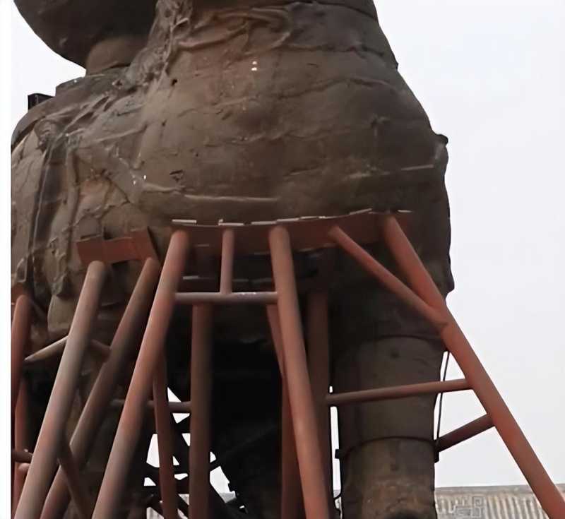 于是文物局大手再一挥,打补丁,装支架,哪里裂开往哪加,拄拐版铁狮子闪亮登场,但万万没想到,新加的拐杖力度有点狠,撑的铁狮子遍身是裂痕,新伤旧伤叠一起,专家还没研究出他用的什么浇筑法,铁狮子就废了。