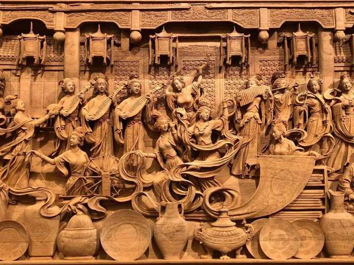 贾正:据说东阳木雕始于唐代,发展于宋,盛于明清,距今已有一千三百多年历史。近年来,中国各大博物馆和APEC会议会场、G20峰会会场、金砖会议会场、“一带一路”高峰论坛会场等等,每一个重大主场外交活动场馆都有东阳木雕的大幅呈现。东阳木雕为什么能够被誉为“国之瑰宝”?