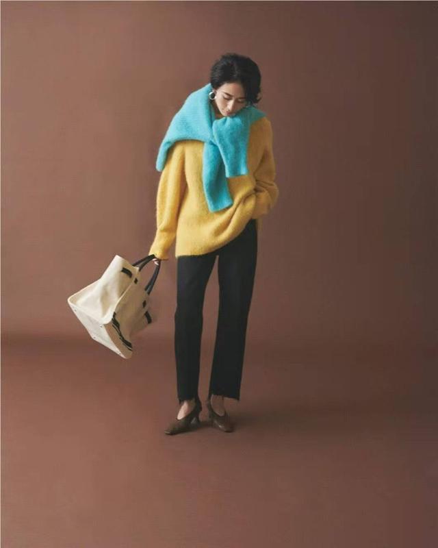 一在配色,二在手法,下图的黄毛衣穿搭,就是对黄色时尚的最佳演绎。