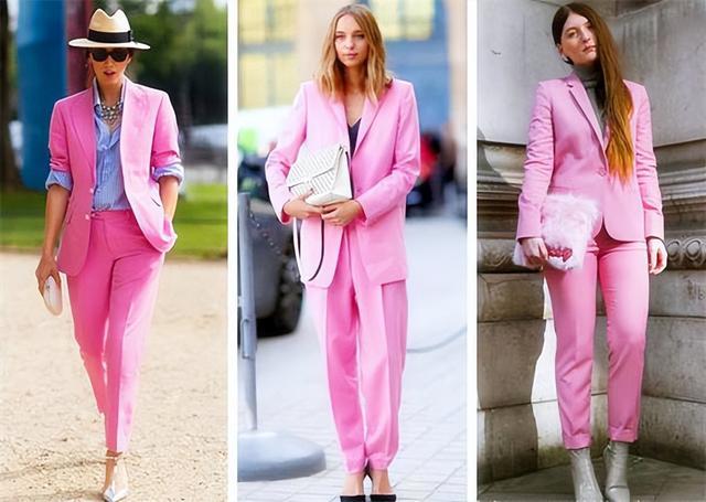 西装,衬衫,裤子,这些中性单品,都是粉色最佳的落脚处。