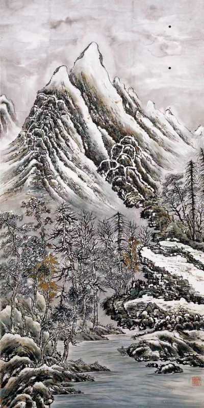 何香凝 枫林雪景 20世纪40年代 134×68cm 何香凝美术馆藏