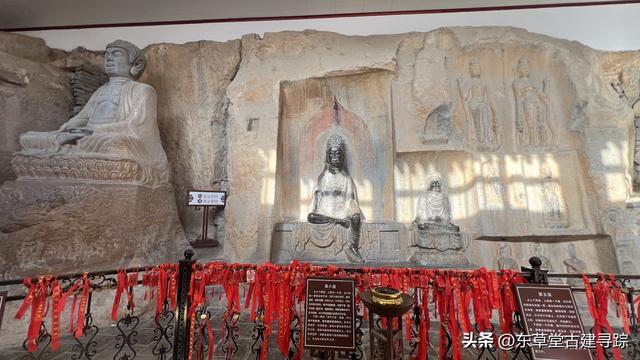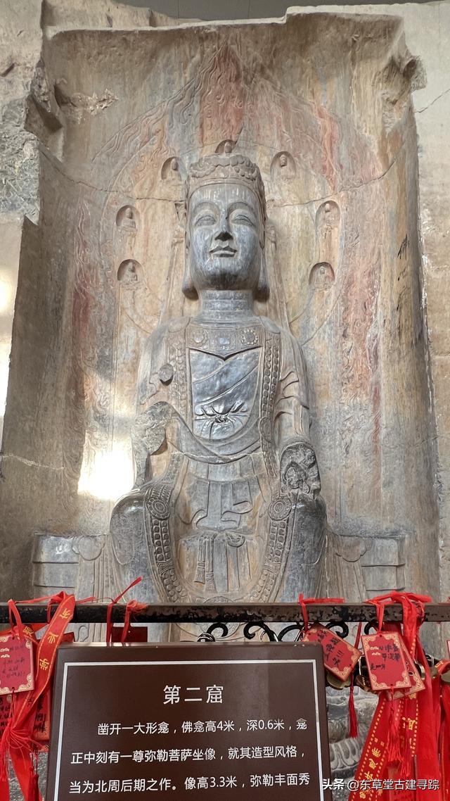 其中东侧一尊弥勒佛像,被文物专家鉴定为北周作品。造像分浮雕、高浮雕及圆雕三种技法,大者高至丈余,小者矮不盈尺,雕工细腻,线条流畅,形神兼备。
