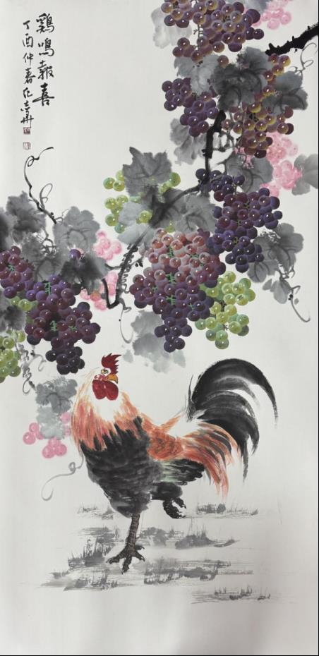 2024中马建交50周年纪志华先生向马来西亚献礼国画作品《鸡鸣报喜》并代表讲话。
