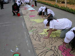最大的填色画,面积为510.09平方米,画的主图案是牡丹,是由来自洛阳师范学院的学生绘制完成。最长的填色画,长度为161.73米,共画了一百多朵千姿百态的牡丹,由来自洛阳理工学院的师生绘制完成。