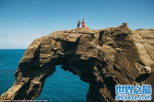 拍出魔幻感觉的婚纱照,这是印尼万隆的一个悬崖边上,阳光加上云层
