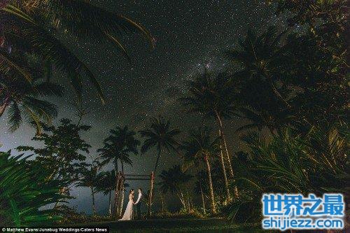 澳大利亚的密逊海滩,新人在银河系的灿烂星光下完婚