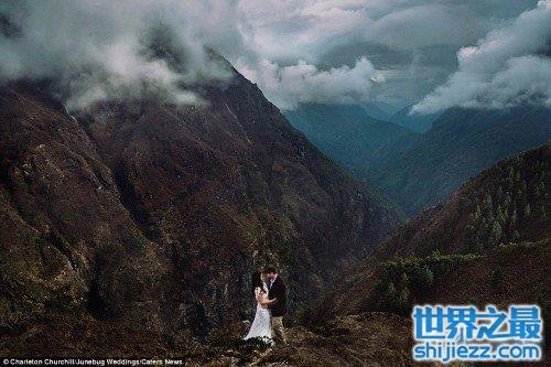 尼泊尔境内的喜马拉雅山:这对新人站在了世界之巅