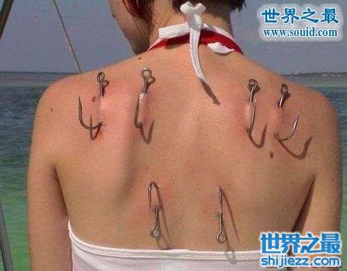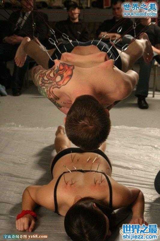 世界上最残忍的自虐,美女针穿肉玩吊钩(图)