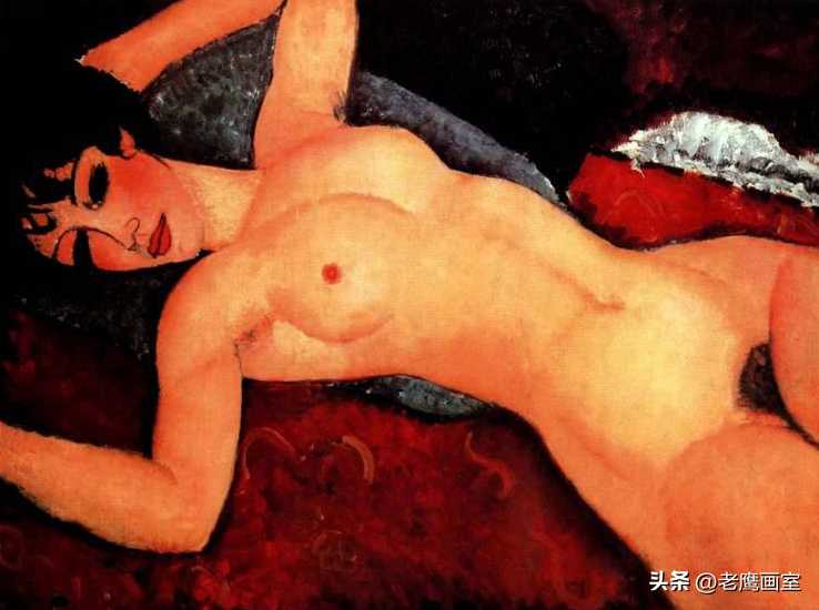 故意拉长的颈部把画中女子莫名的忧郁和悲伤表现的很充分、张扬。而夸张的细长身体有一种变形的和谐和匀称,给人一种打破常规的视觉美效果。色彩上,背景的软垫色彩很有讲究,整块的暗红色和整块的灰、黑、黄色,对比协调,过渡自然。整体色彩搭配得隐晦而不刺目,与人物的形象一致,很好地突出了人物病态。