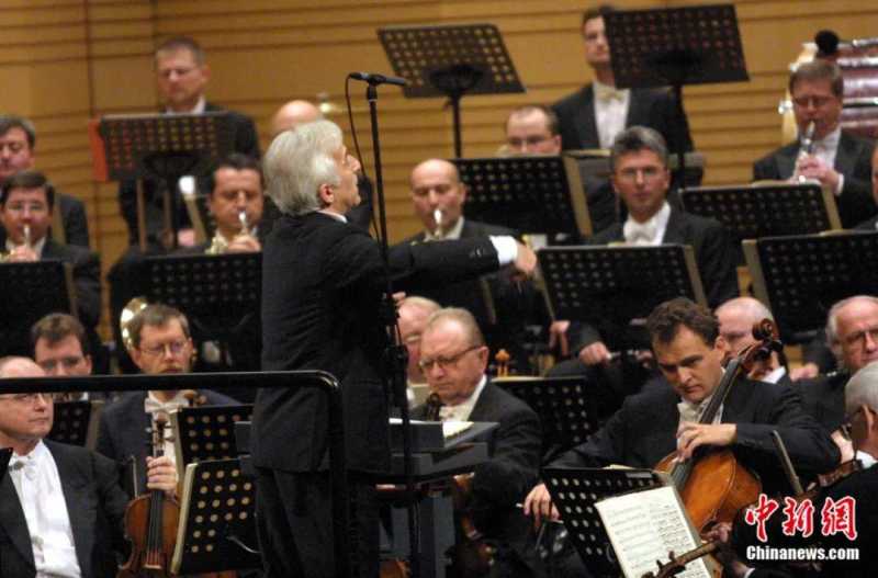 著名指挥大师阿什肯纳齐在第四届北京国际音乐节上指挥捷克爱乐乐团演奏了捷克作曲家斯美塔那的传世之作--由六首交响诗组成的管弦乐套曲《我的祖国》。李刚 摄
