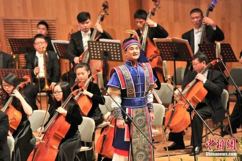 大型交响声乐套曲《刘三姐》在广西南宁上演,通过交响声乐套曲的表现形式,以广西《刘三姐》为代表的民歌为蓝本,将独唱、重唱、原生态重唱、合唱、交响乐队进行有机融合。洪坚鹏 摄