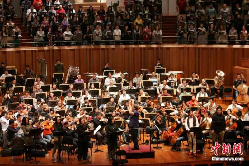 马勒第八交响曲的排练观摩活动在国家大剧院上演。吴间道 摄