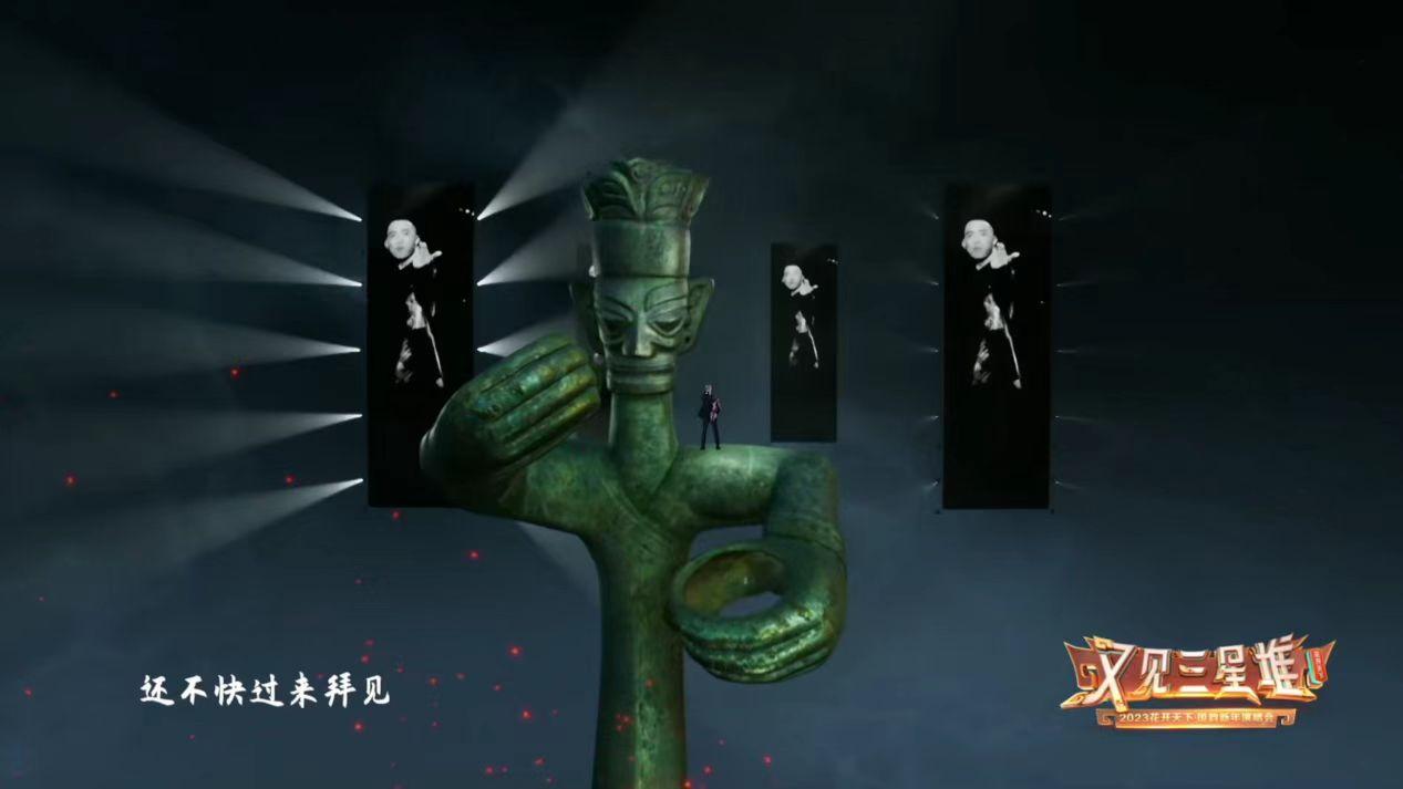 GAI周延站在数字化“青铜大立人”肩膀上唱歌。