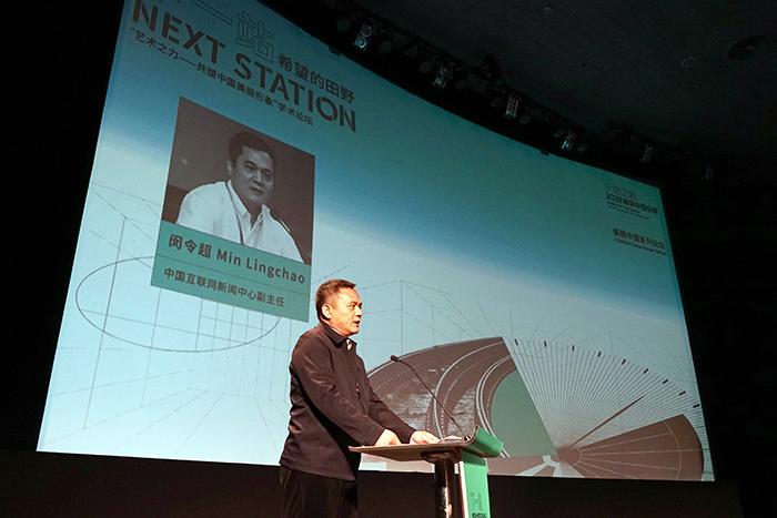 中国互联网新闻中心副主任闵令超首先代表主办方领导致辞。他介绍到,成立于2000年的中国互联网新闻中心是多语种全媒体报道解读新时代中国的国家权威网络传播平台。作为中央重点新闻网站,所属中国网近年来在文化艺术领域持续耕耘,致力于以文化塑造新时代中国国家形象。其中,被国家广电总局列入广播电视重点节目名单的大型实景文化类访谈节目《似是故人来》,被列入中宣部对外影视计划的《万象中国》系列微纪录片,和由艺术中国策划的一系列“文化赋能乡村振兴”论坛与实践活动都在业界引起广泛反响。