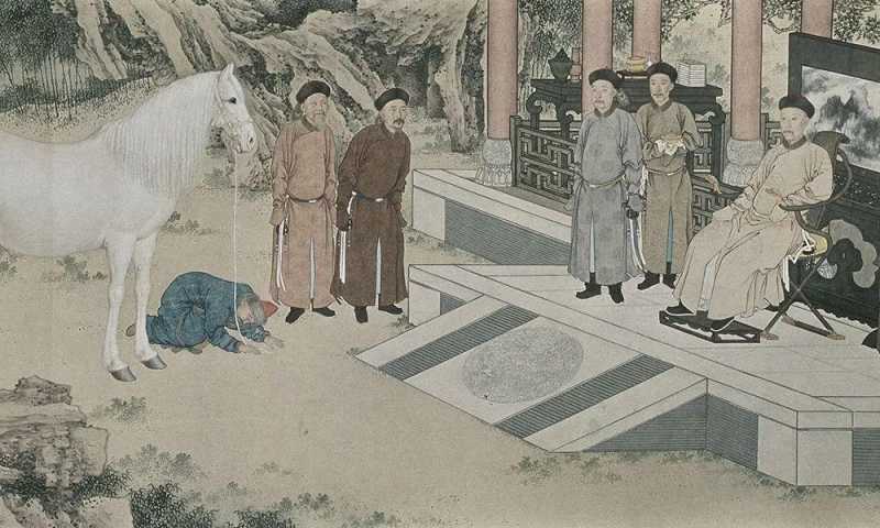 哈扎克人向皇帝献马 清乾隆年间 纸本水墨 淡彩