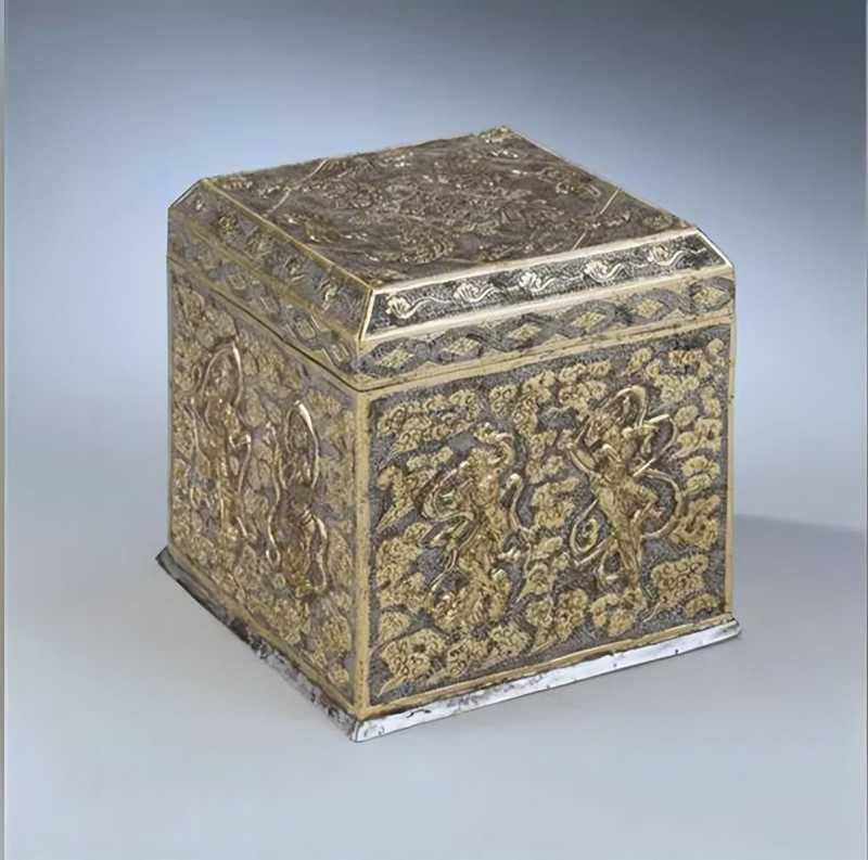 银盒 辽,部分镀金银质,带浮雕和镂刻装饰
