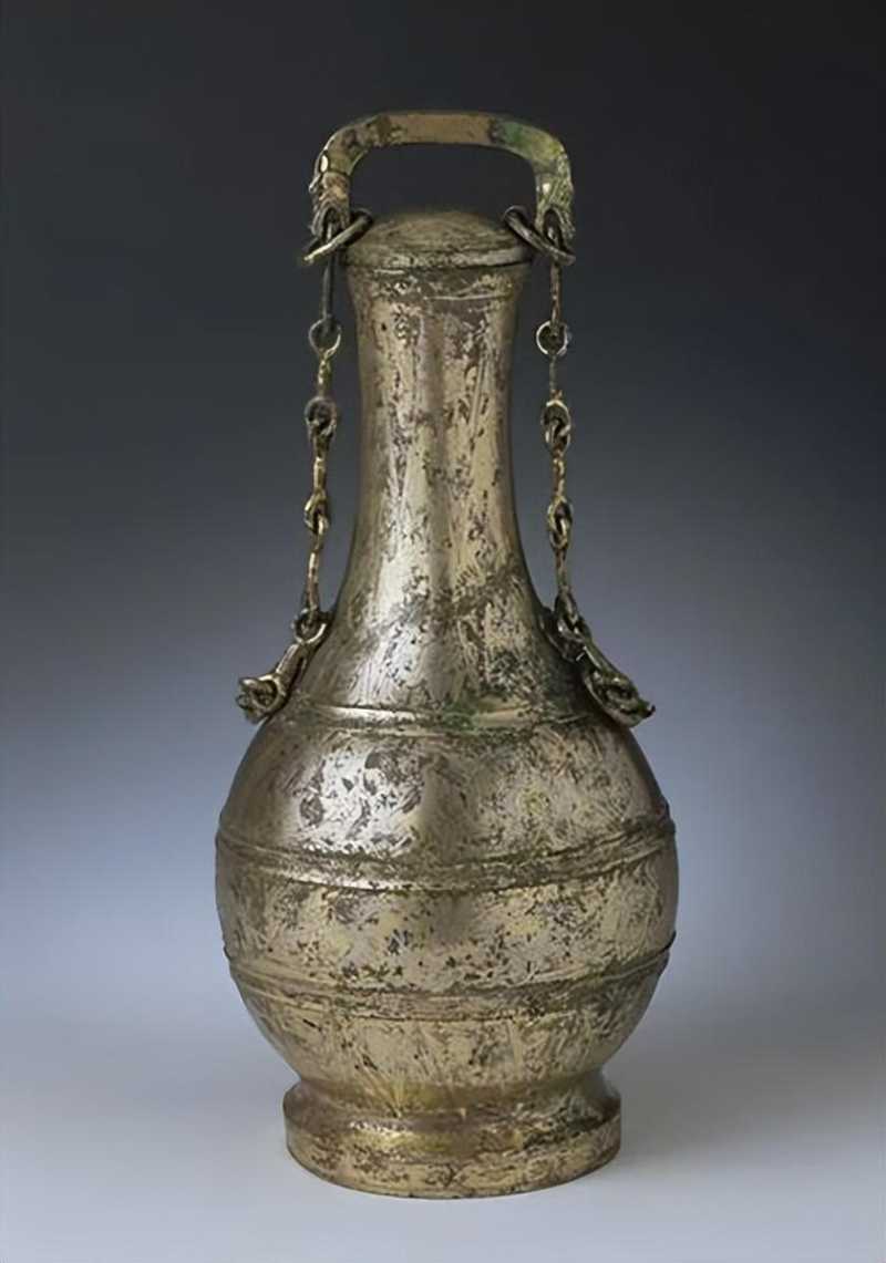 胡酒瓶 汉代早期 镀金和镀银青铜