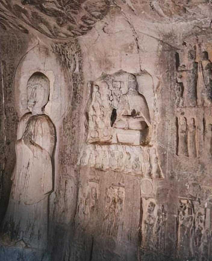 龙山石窟根据造像题材的不同,在采用平直概括刀法时, 又有许多微妙的变化。
