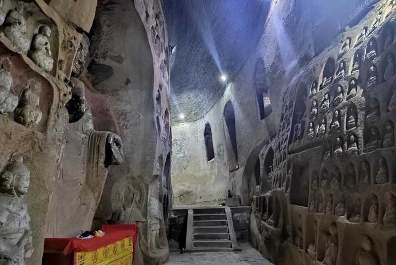 高庙山石窟开凿年代从北齐到隋朝,石窟开凿于高庙山山脚石壁上。
