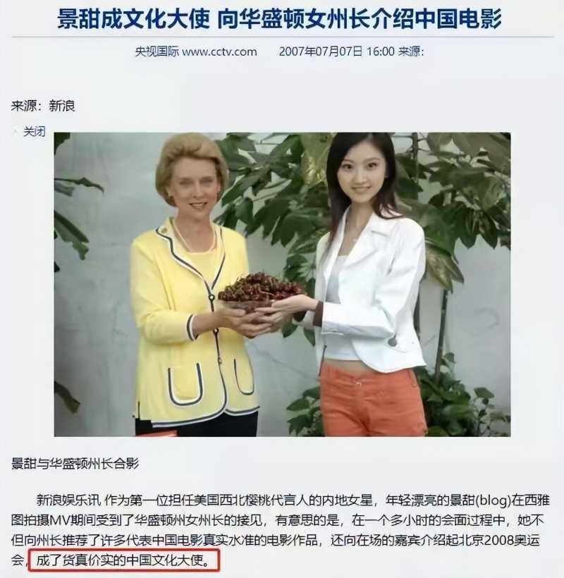 景甜还被华盛顿州长接见,代言了美国西北樱桃。