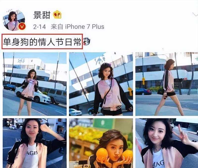2017年的情人节,景甜突然发文,表示自己恢复单身。